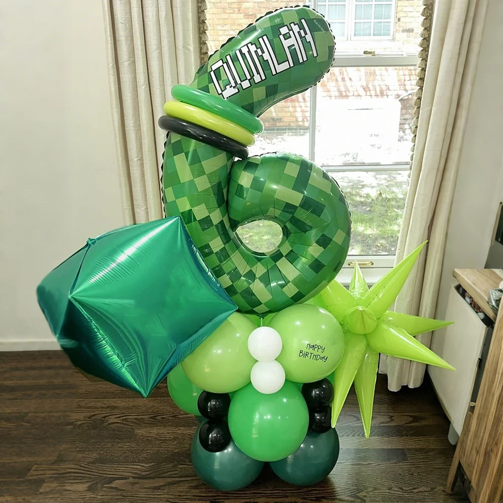 Conjunto Balões Pixel Verde Aniversário