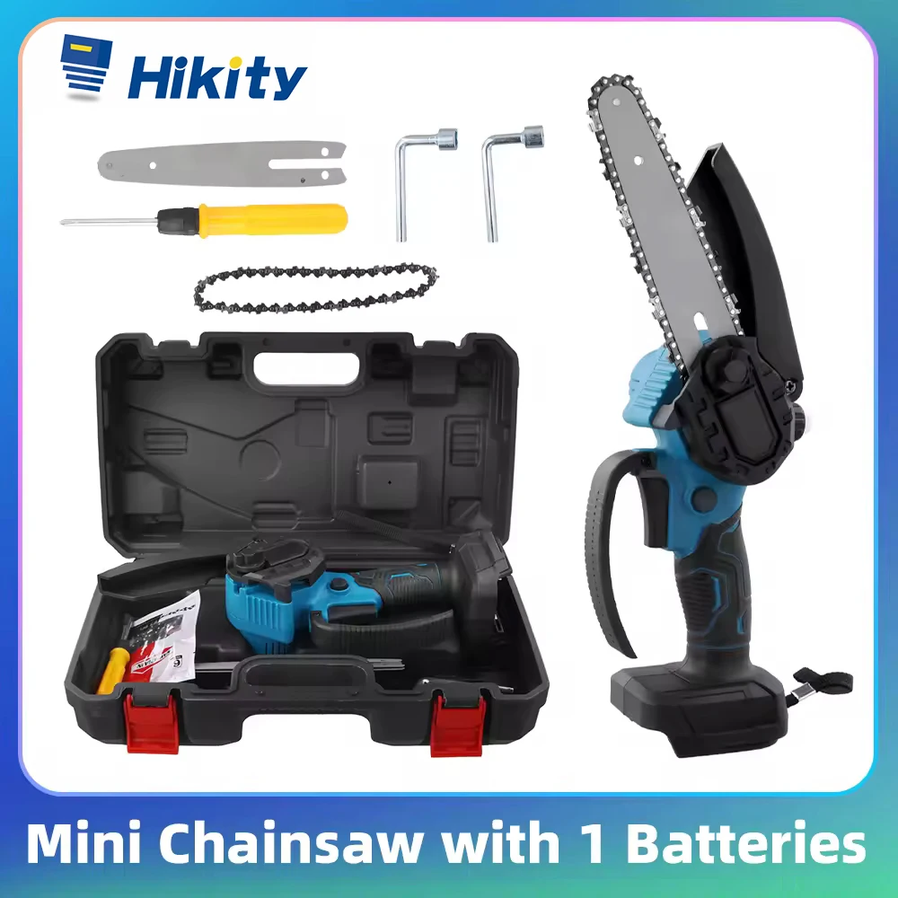 Serra Elétrica Sem Fio Hikity de 6 Polegadas com Corrente Substituível, Mini Serra Portátil para Corte de Ramos e Madeira